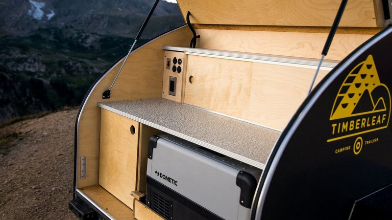 Oblý přívěs má na svědomí firma Timberleaf z amerického Colorada a jeho podstatou je a robustní hliníkové tělo ve tvaru kapky posazené na vysokopevnostní kovový rám a nezávisle odpružené šasí. Předností jsou nejen kompaktní rozměry, ale i celková hmotnost začínající na 465 kilogramech, které dovolí připřáhnout Piku za prakticky jakýkoli automobil bez zvláštního oprávnění.