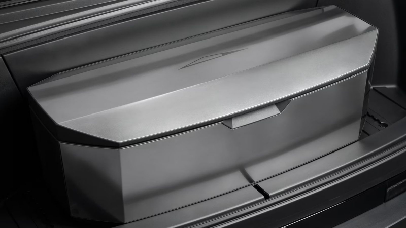 Tesla vyrukovala s chladicím boxem, který je určen pro přední zavazadelník elektrického pick-upu Cybertruck. Jenže jen nevyplní od stěny ke stěně, nelze jej připojit k elektrickému okruhu a už prázdný je velmi těžký. Za to vše pak je třeba dát 16 tisíc korun. Co to je? Foto: Tesla