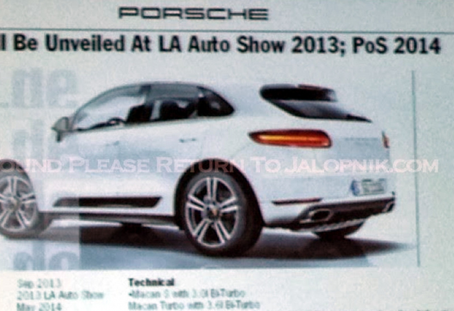Začneme u novinky, jejíž odhalení je pomalu na spadnutí. Jde o Porsche Macan, jehož debut už byl potvrzen pro autosalon v Los Angeles a začátek výroby naplánován na prosinec. Listopadový debut byl na konferenci znovu potvrzen, přibylo ale i několik nových informací. Přinejmenším do USA dorazí vůz pouze se dvěma benzinovými šestiválci, přičemž oba budou disponovat dvojitým přeplňováním. Levnější Macan S ale bude disponovat objemem pouze 3,0 litru, dražší Macan Turbo pak 3,6 litru. Samozřejmostí bude pohon všech kol a automatická převodovka PDK, zbylé údaje hovoří pouze o novém elektrickém posilovači řízení a výbavě, ty pro nás být relevantní nemusí.