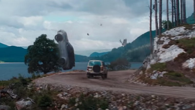 Záplavě moderních aut v nové bondovce vypálilo rybník desítky let staré SUV