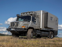 Karavan na korbě Zetrosu nabídne dřevěné obložení, audio Bose či internet. Vůz pojme 600 l nafty a 300 l vody, takže civilizaci nemusíte vidět moc čas...