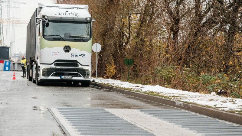 Rakouský start-up (na třetí fotce jeho dnes 27letý zakladatel Alfons Huber) zkouší generovat energii přímo na silnici s pomocí využití energie brzdících kamionů. Pilotní program rozjel v hamburském přístavu. Foto: REPS, tiskové materiály