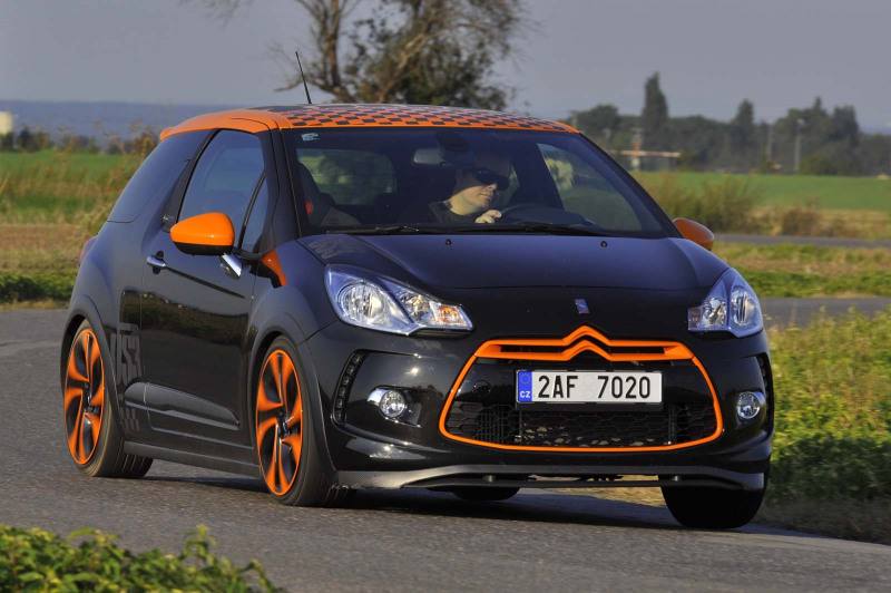 Ten nejtěsnější kontakt Citroënů z jedné i druhé stany by mělo podle automobilky ztělesňovat docela nedostatkové zboží jménem DS3 Racing (v ČR jich bude k mání pouze sedm). Tedy alespoň podle karbonových štítků na motoru a v kabině, které vám nezapomenou připomenout, že máte tu čest být ve společnosti výjimečného produktu oddělení Citroën Racing honosícího se titulem „World Rally Champion“. Pokud je měřítkem oné výjimečnosti množství použitých komponentů z nelakovaného karbonu, exkluzivnější stroj tato značka zatím nepostavila. Ze skutečného uhlíkového kompozitu jsou lemy blatníků, nástavce prahů, imitace difuzoru nebo spoiler pod předním nárazníkem a dokonce boční ochranné lišty. Ani v kabině se nešetřilo, černá tkanina zapečená v pryskyřici obepíná ovládací prvky středové konzoly, doplňuje volant i vnitřní dveřní kliky.