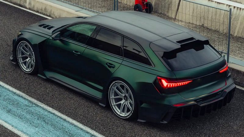 Víc než to ovšem RS6 zaujme novým rozšířeným bodykitem, který je z karbonu a působí opravdu brutálně. Protože se jedná o veškeré venkovní panely včetně střechy s výrazným sáním, došlo na pokles hmotnosti i těžiště. Mimo to se zlepšila aerodynamika a narostl přítlak. A i když kombík zvládne odvézt i almaru po babičce, snadno se dokáže postavit supersportům v jejich přirozeném prostředí, tedy na okruhu.