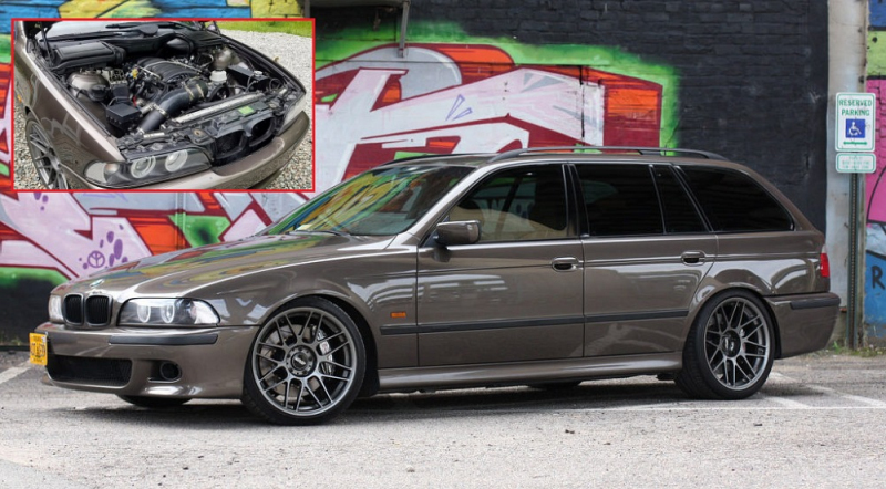 Základem stavby se stala verze 528i Touring z roku 1999, která kromě atmosférického řadového šestiválce disponovala také automatem. Tato převodovka ovšem „byla odejita“ spolu s původním motorem, přičemž tomu novému dělá společnost šestistupňový manuál Tremec T56 Magnum. Zasazen je přitom mezi přední sedadla vyvedená nově v béžové kůži, zadní lavice však zůstala u někdejší černé. Ve výsledku zde tedy máme opravdu razantní přestavbu, která navíc probíhala několik let, než byl majitel naprosto spokojen.