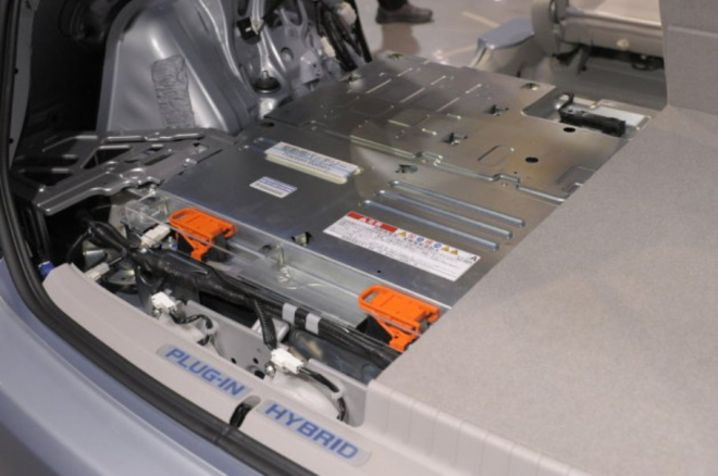 Bateriím pro hybridy a elektromobily nesou díl zodpovědnosti za masivní znečištění okolo grafitových dolů v Číně (vlevo Toyota Prius plug-in, vpravo baterie pro Teslu S)