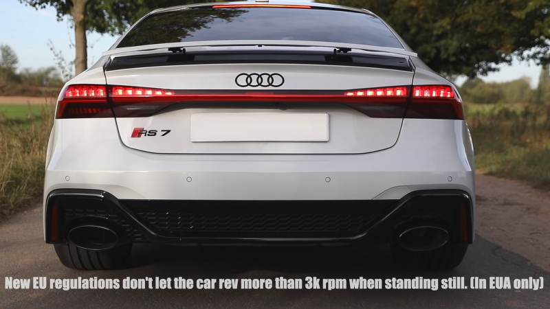 U vozů s automatickými převodovkami bylo sice už dříve často omezené samotnými automobilkami kvůli technice či bezpečnosti, obvykle ale až ve vyšších sférách a někdy také vůbec. Nyní prošlápnutí pedálu plynu na místě nesmí znamenat překročení hranice 3 000 otáček za minutu. RS7 se tak na záběrech při předvádění zvuku doslova dusí a lidé z Auditography raději rovnou dodávají, že tohle se týká jen Evropy - Američané a další zákazníci budou podobného obojku ušetřeni.