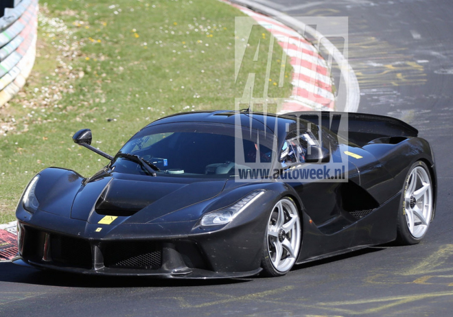 Můžeme však prohlásit, že těch 6:35 stále nestačí na překonání absolutního rekordu Stefana Bellofa v závodním Porsche 956, který v roce 1983 zajel 6 minut 13,11 sekundy. Pokud chcete, můžete si novou variantu LaFerrari prohlédnout na fotografiích. Tři snímky ze „špionážní sady” přikládáme, další si můžete prohlédnout v kompletní galerii na Autoweek.nl.