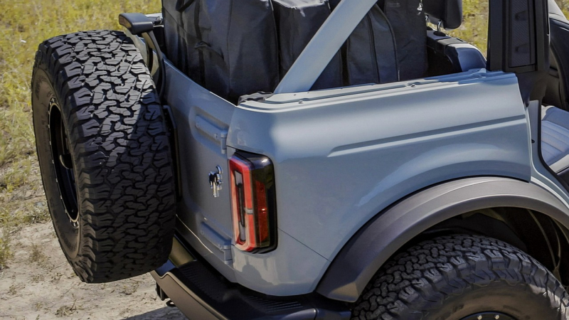 Nové Bronco svými pneumatikami až příliš odkazuje na konkurenční Jeep Wrangler, což Fordu nadělalo vrásky na čele hned dvakrát. Nakonec vše vyřešil tím, že výrobce pneu nechal alespoň pro svůj model označení pneu upozadit. Foto: Ford