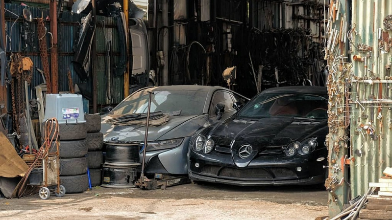 Díky tomu si nyní můžeme prohlédnout chátrající BMW i8 a Mercedes-Benz SLR McLaren, tedy dva zajímavé sportovní vozy, kdy ten první je jen pár let starý a ten druhý se začíná stávat ceněnou klasikou. Pod nánosem prachu jeho hodnota samozřejmě spíše klesá, pročež by se mnohý mohl divit, proč jej majitel nechává takto ladem v malém skladišti v oblasti Kam Tim.