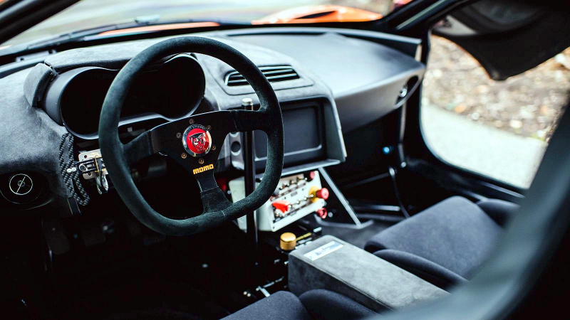 Pětilitrová přeplňovaná jednotka se suchou olejovou vanou byla spárována s šestistupňovou sekvencí, mechanickým samosvorem a pohonem zadní nápravy. O její zastavení se starají brzdy AP Racing nastavitelné z kabiny, zároveň je přitom možné sáhnout také po páce hydraulické ruční brzdy. A jak dokládá pohled na středovou konzoli, k dispozici je nejspíše i něco na způsob driftovacího režimu. Dá se tedy předpokládat, že utržení zadních kol je procházka růžovou zahradou.
