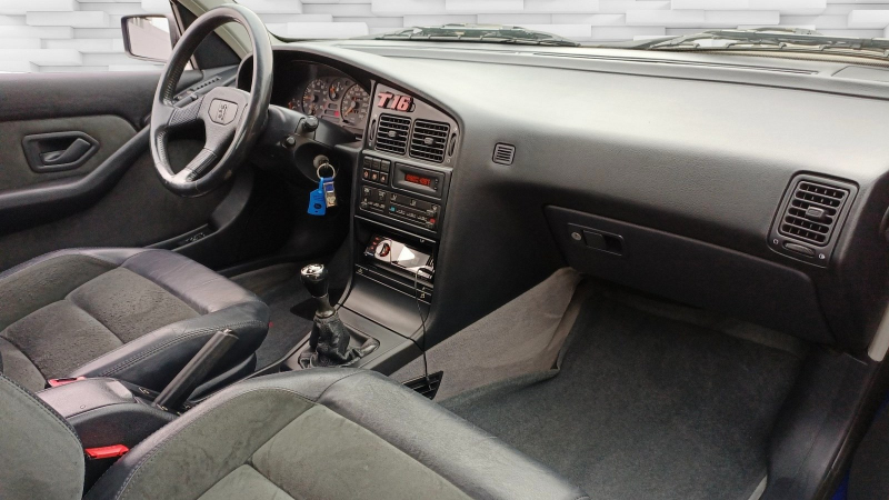 Peugeot 405 T16 patřil v roce 1993 mezi nejrychlejší produkční sedany světa a měl na svou dobu vážně poutavý vzhled i techniku. Dnes vidět nějaký v prodeji je vzácnost, tento z roku 1993 je k mání za 660 tisíc Kč v solidním, ale nijak mimořádně krásném stavu s ne úplně malým nájezdem. Foto: Elite Garage Zuzwil, publikováno se souhlasem