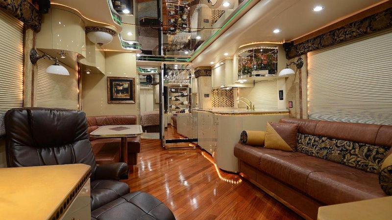 Ve světě, kde je limitem jen stav vašeho konta, vznikají fantastické věci. Tento obytný vůz je jednou z nich - výrobce splní zákazníkům jakékoli přání, a tak není problém ani několik koupelen, ložnic nebo dokonce sklep.