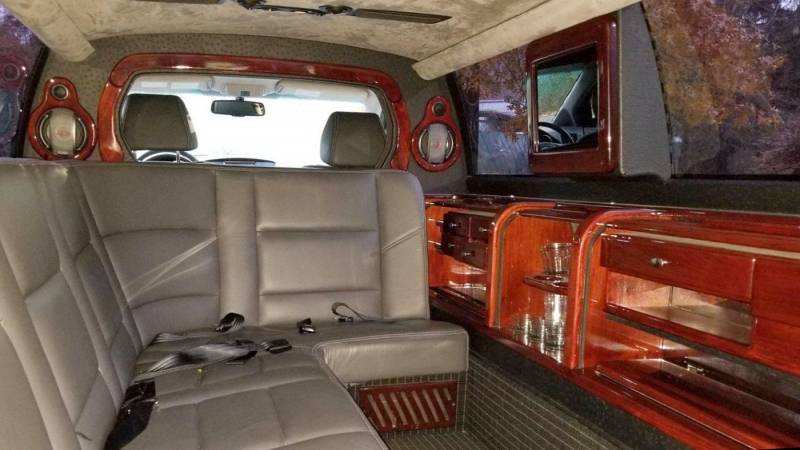 Je tu také rozšířená audioaparatura, obrazovky výklopné ze stropu a chladnička, tedy vše, co se od takové prodloužené limuzíny očekává. Podle dostupných informací vyšla stavba vozu na skoro 3 miliony korun, nyní se ale nabízí za 39 995 USD (868 000 Kč).