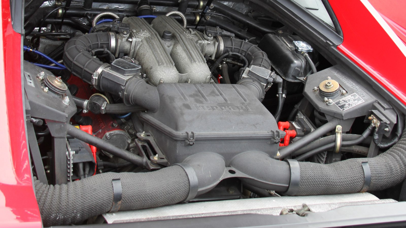 Že nejde o pouhé plácání do větru, dokazuje pohled na Ferrari 348, které zamířilo na motorovou brzdu. Italská automobilka s jeho výrobou začala v roce 1989 a skončila o šest let později, přičemž u všech variant instalovala pod kapotu 3,4litrový osmiválec Tipo F119. V závislosti na zvoleném provedení se přitom výkon pohyboval mezi 300 a 320 koňmi, což na atmosférickou jednotku z konce devadesátých let rozhodně nebylo špatné. Zvláště když toto stádo mělo na starosti přijatelných 1 500 kilogramů hmotnosti.