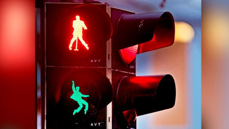 ...a tak nove Elvise Presleyho připomínají i specifické semafory s jeho siluetou při tanci, zcela oficiálně. Od Němců nevídaná záležitost
