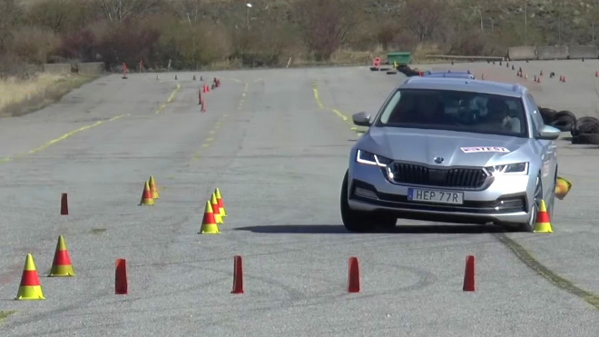 Octavia zvládla test projet s pouze rychlostí 70 km/h, při zvýšení tempa o dva kilometry se vůz po zatížení začal hrnout stranou. Došlo tak na kontakt s kužely, stejně jako na ztrátu stability. Octavia tak následně měla problémy i s návratem do původního jízdního kruhu. Pokud byste se tak náhlé překážce museli vyhýbat na nějaké užší cestě, možná byste skončili ve škarpě.