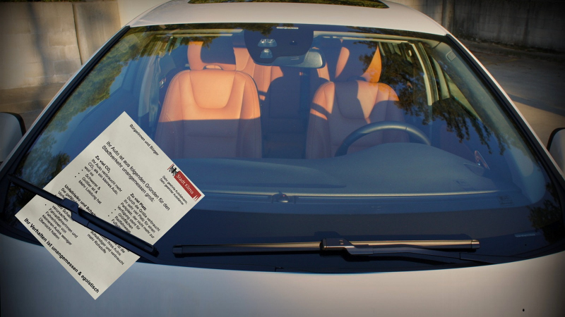 Odpůrci SUV v Německu strkají za stěrače SUV vzkazy majitelům, které se tvaří jako pokuty. Na jejich základě se majitelé mají zamyslet nad škodlivostí jejich aut
