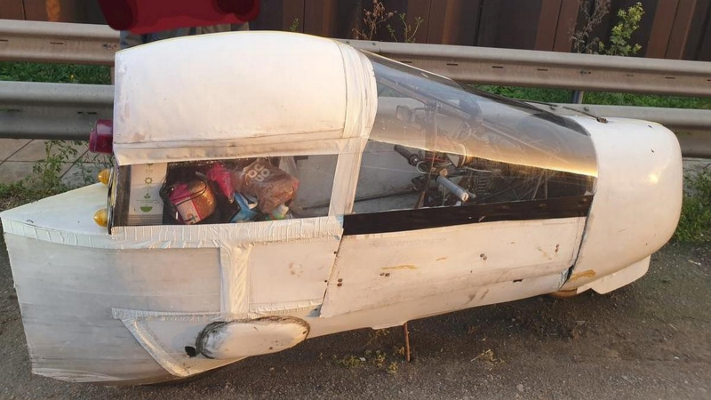 Jenže tento kříženec motorky a auta zabalený do provizorní karoserie slepené lepicí páskou měl všechny potřebné dokumenty, jež plně odpovídaly platným předpisům. Majitel tohoto díla splnil veškeré povinnosti pro řízení a jeho dopravní prostředek netrpěl z administrativního hlediska žádnými nedostatky.