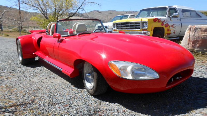 Po pravdě, umístit takhle motor dozadu není úplně špatný nápad pro auto na zábavu. Co z toho dělá kacířství, je fakt, že za základ posloužil Jaguar E-Type, místo aby si člověk, který má prý bohaté zkušenosti se stavbou zakázkových aut, vyrobil vlastní trubkový rám a do něj nacpal tohle pohonné ústrojí, sedačky a přední nápravu.