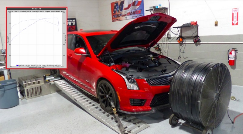 Naměřená hodnota výkonu byla 449,8 hp na zadních kolech, což v našich končinách znamená 455,7 koně. MJD Performance odhaduje třináctiprocentní ztráty v pohonném ústrojí; nevíme, zda tu byl manuál nebo automat, ale tipujeme to první. Po započítání to znamená téměř rovných 515 k na klikové hřídeli, tj. o 45 víc, než Cadillac uvádí v oficiálních materiálech. Člověk se pak nediví času na stovku 3,8 s a maximálce 304 km/h, které jsou jinak s 470 koňmi dost těžko k uvěření...