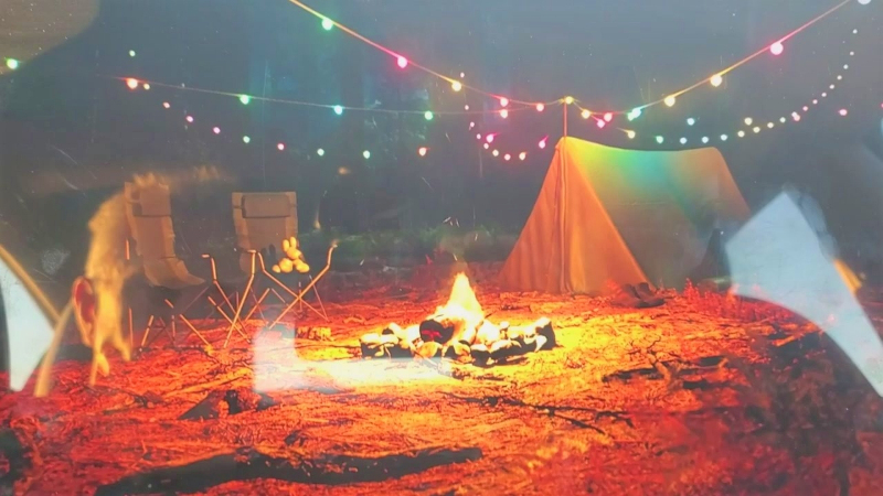 Uklidňující scenérie se objevuje na středovém panelu po deseti minutách nečinnosti vozu při aktivaci funkce „Camp Mode“. Mezi odletujícími uhlíky hořícího ohně je vidět černé pozadí přírody, kde extrémně pozorní jedinci až nyní zpozorovali jeden „easter egg“, tedy na první pohled skrytou záležitost - siluetu tehdy ještě nepředstaveného Cybertucku.
