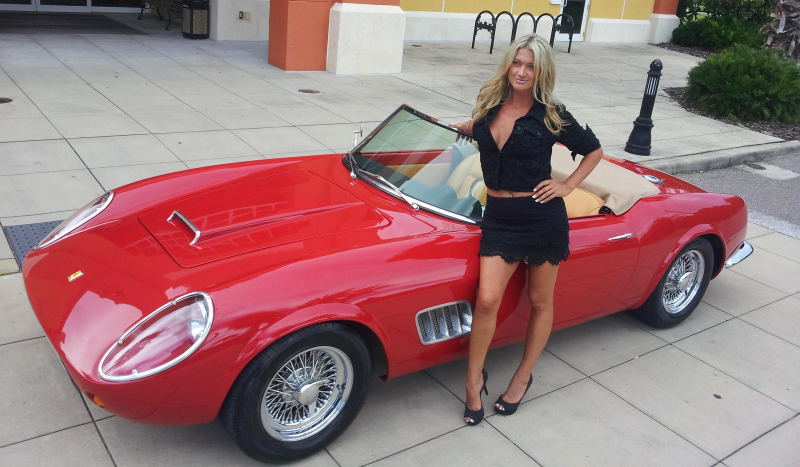 Zmiňme také zelený Ford Mustang Cabrio IV. generace, který má dost podivný zelený lak, ale také osmiválec a manuální převodovku, takže by mu člověk lak odpustil - a modelka také není ošklivá. Červené Ferrari 250 California Spyder je krásné zvenčí, ale uvnitř je 363 Ford Racing Boss V8, něco, co do takového auta vůbec nepatří. A opět bychom si radši prohlédli auto než paní vedle něj stojící.