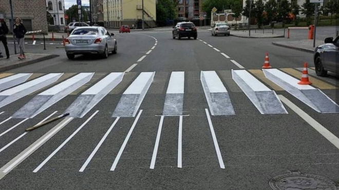 Na této podobě přechodů se léta nic nemění, je tak snadno identifikovatelná řidiči i chodci od dětí po důchodce. Už kvůli tomu nezní moc moudře pokouše se jej měnit, v Rusku se ale rozhodli, že zkusí něco trochu jiného. A jeden přechod v Kazani namalovali způsobem, který můžete vidět na fotkách. I když šlo nadále jen o malůvku, opticky dělala z určitých úhlů dojem, jako by na silnici byly umístěné betonové bloky ne zrovna malých rozměrů.