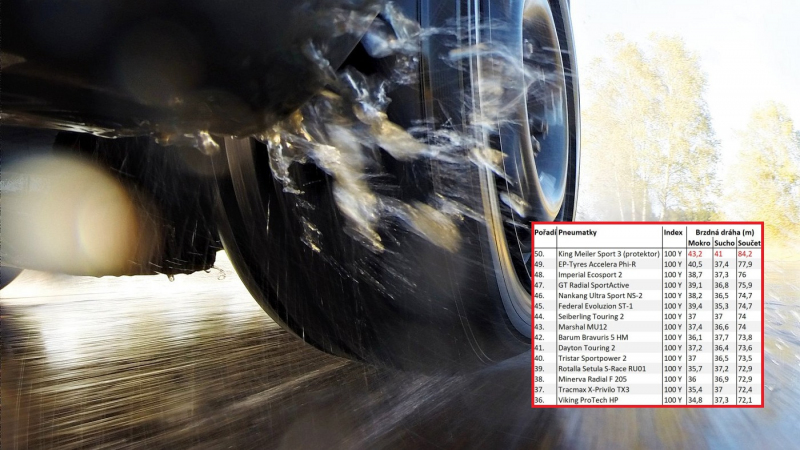První test letních pneu pro rok 2020 zjistil brzdnou dráhu 50 typů, 30 radí se vyhnout